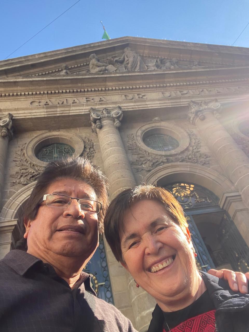 El conocido dirigente social de la Unión de Colonias Populares, Miguel Noyola, celebra junto a la Dra. Dolores Gonzalez Saravia su reciente nombramiento como presidenta de la Comisión de Derechos Humanos de Cd de México.